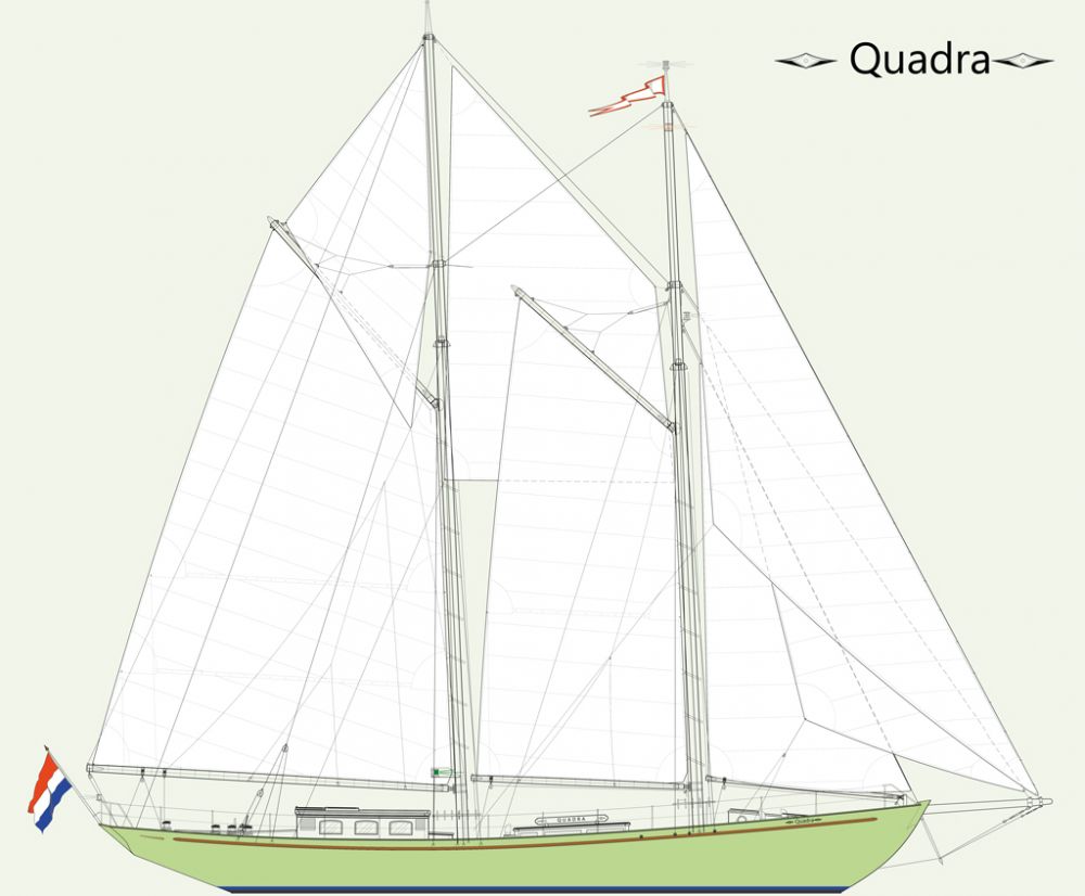 Die klassische Segelyacht Quadra ist ein Zweimastschoner, gebaut nach Plänen des bekannten amerikanischen Schiffbauingenieurs John Alden. Dank moderner Technik lässt sich die Yacht auch mit kleiner Crew problemlos segeln.