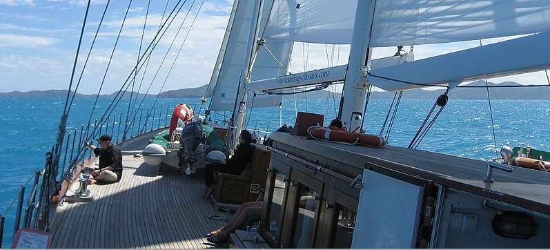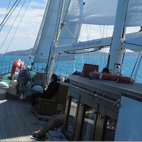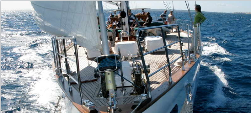 Dabei können Sie auch selbst ans Ruder gehen und beim Trimmen der Segel helfen. Oder Sie lassen sich einfach verwöhnen und verfolgen das Spiel der Wellen von der großen freien Decksfläche aus Teakholz, beobachten die vorbeiziehenden Inseln und Küsten und oft auch Delfine, Wasserschildkröten und manchmal sogar Wale.