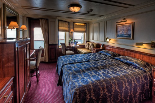 Kabinen, Restaurant und Bibliothek sind gleichermaßen geschmackvoll im traditionellen Stil eingerichtet. Auf Hochglanz polierte Messing-Applikationen und edles Mahagoni rufen die nautische Vergangenheit der Schiffe wach. Mit Ausnahme von sechs Innenkabinen verfügt die Royal Clipper ausschließlich über Außenkabinen mit bis zu 20 qm Grundfläche. 14 Deluxe-Suiten bieten maximalen Komfort und Luxus mit Privatbalkon, 24-Stunden-Room-Service sowie einer Badewanne mit Whirlpool.